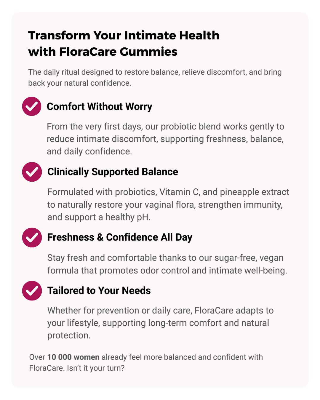 Over 10,000 women already feel fresh and confident every day with FloraCare