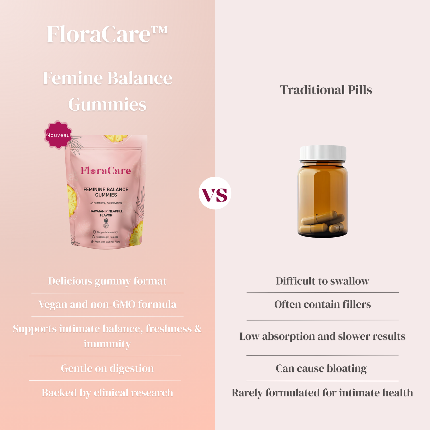 Unlike other supplements, our gummies combine natural pineapple extract with clinically proven probiotics, offering a complete solution for intimate health.
